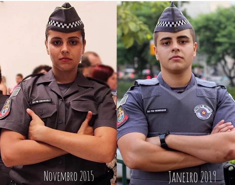 Isso não foi tão rápido. Primeiro eu tinha que pensar no nome, que [quando comecei o tratamento hormonal] ainda não tinha escolhido. Fiz isso junto com a minha mãe. Decidimos por Emanoel Henrique e mandamos os documentos para a PM pedindo a troca no colete. Até então, eu usava Lunardi, passei pouco mais de um ano com esse nome na farda. Fiz a mastectomia em julho de 2018 e, em agosto, quando voltei de férias, recebi o despacho autorizando o Henrique. Demorou pra caramba, chegou depois de uns dez meses. Sabe por quê? Porque eu fui o primeiro. O próprio sistema da polícia não tem campo para fazer alteração de nome, eles estão desenvolvendo isso agora. A partir daí, sim, tive que me adaptar às novas regras, como usar o usar o fardamento masculino, o corte de cabelo aparado mais baixo, essas coisas. Os homens também não podem usar brincos ou outros acessórios que são permitidos às mulheres policiais.