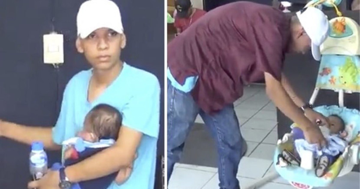 Por isso, segundo o Informativo Nuevo León, ele decidiu procurar um emprego onde pudesse levar o filho com ele para que ele pudesse estar sempre por perto quando a criança precisasse de alguma coisa. Conseguiu um emprego de cabeleireiro e corta cabelos masculinos enquanto o bebê senta em uma cadeira de bebê.