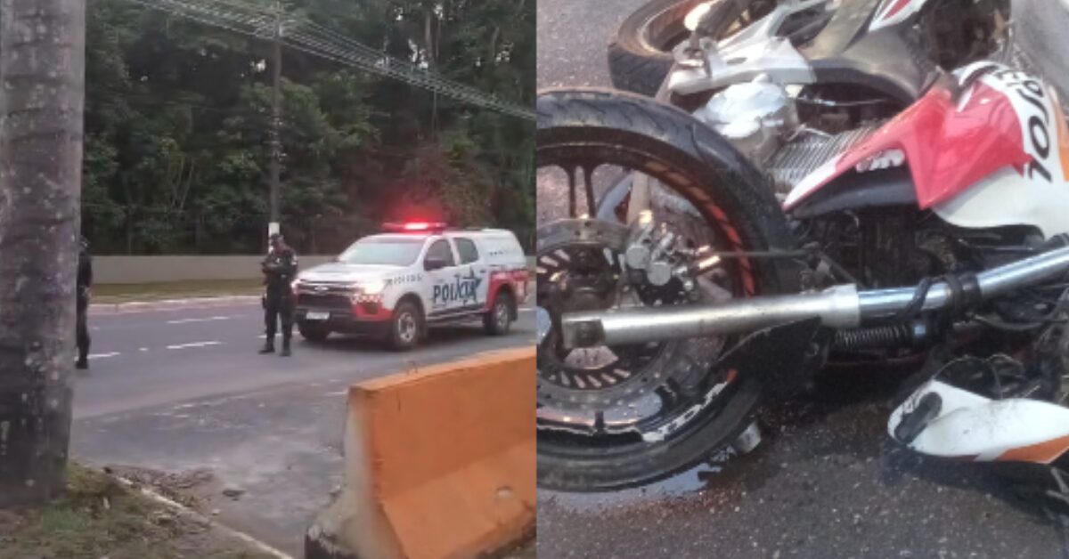 A motocicleta seguia no sentido das avenidas Avenida Almirante Barroso para Avenida Pedro Álvares Cabral quando atingiu o canteiro central da pista.