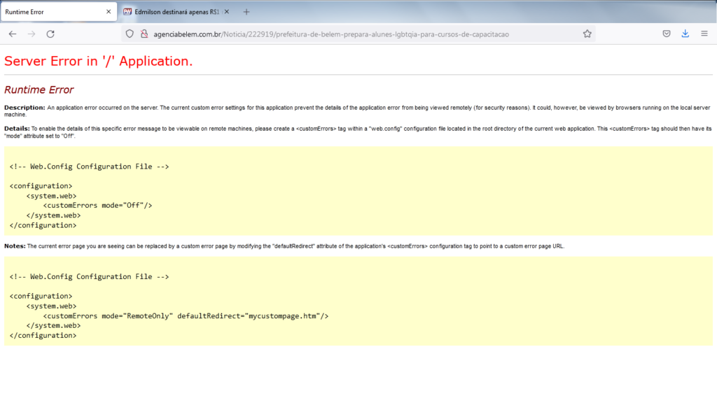 Agora, quando se clica no link da Agência Belém a pessoa é redirecionada para a página com a seguinte informação: