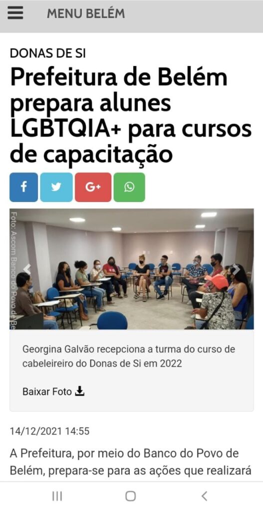 A matéria foi excluída logo após o parawebnews falar sobre o assunto. Com o título “Prefeitura de Belém prepara alunes LGBTQIA+ para cursos de capacitação” a matéria abordava a capacitação da população LGBTQIA+ dentro do programa “Donas de si”, bem como a concessão de microcrédito para essa parcela da população através do Banco do Povo.