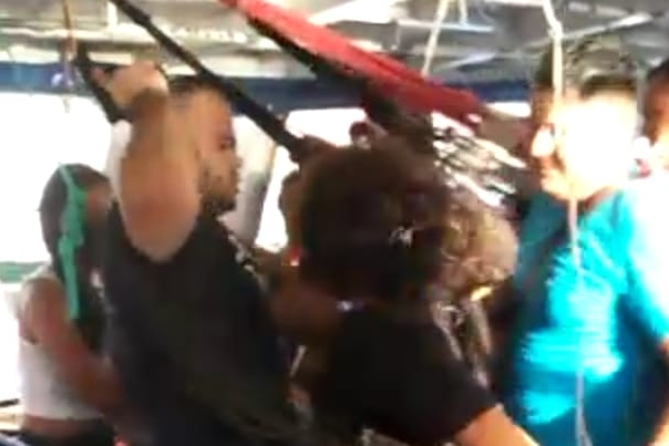 Momento em que mulher é puxada pelos cabelos na embarcação (reprodução)