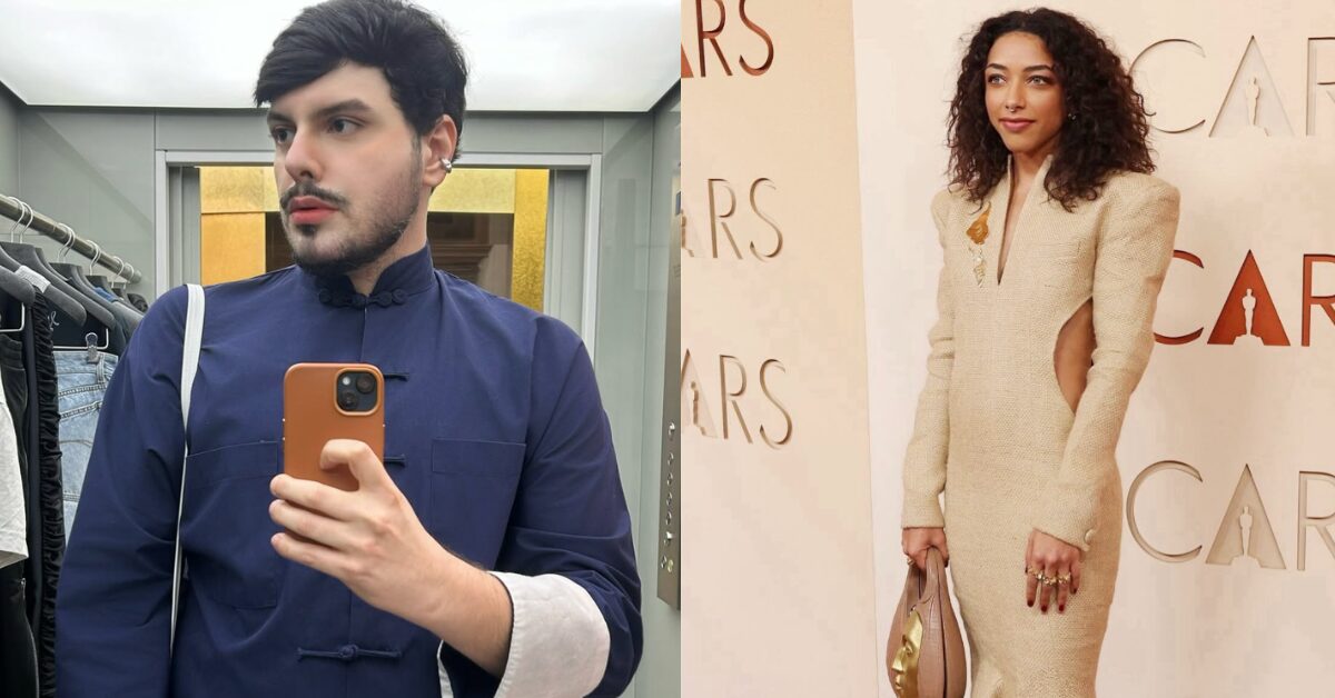 A atriz Alice Carvalho participou da cerimônia do Academy Awards de 2026 usando um vestido criado pelo estilista Marco Normando.