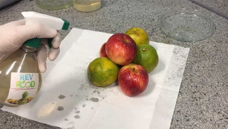 O bioplástico líquido, denominado RevFood, ao ser despejado sobre a superfície dos alimentos, dentro de alguns segundos, solidifica-se, formando uma película ultrafina e comestível, capaz de prolongar significativamente a conservação de frutas e hortaliças.
