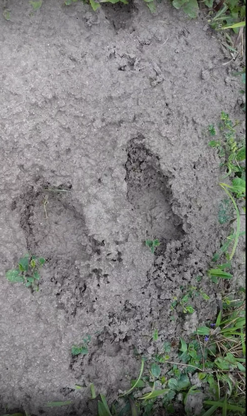 Ele chegou a procurar rastro de pegadas ou indícios que pudessem auxiliar na identificação do animal misterioso, mas encontrou apenas um par de pegadas (veja imagem abaixo), que acredita não ter relação com o ataque. “Só achei essa pegada sinistra, mas acho que não tem nada a ver. Pode ter sido feita por um carneiro se ajoelhando.”