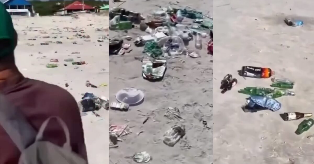 Na manhã desta segunda-feira (21), um morador registrou em vídeo a situação da praia do Atalaia. Nas imagens, a faixa de areia está tomada por garrafas de vidro, sacolas plásticas, latas e outros resíduos sólidos.