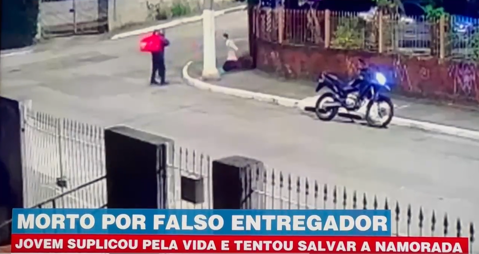 O vídeo mostra o momento em que o motoqueiro desce do veículo e anuncia o assalto, apontando uma arma na direção do casal. Renan chega a se ajoelhar, mas vai em direção ao assaltante quando ele rouba a namorada dele. Neste momento, o homem dispara.