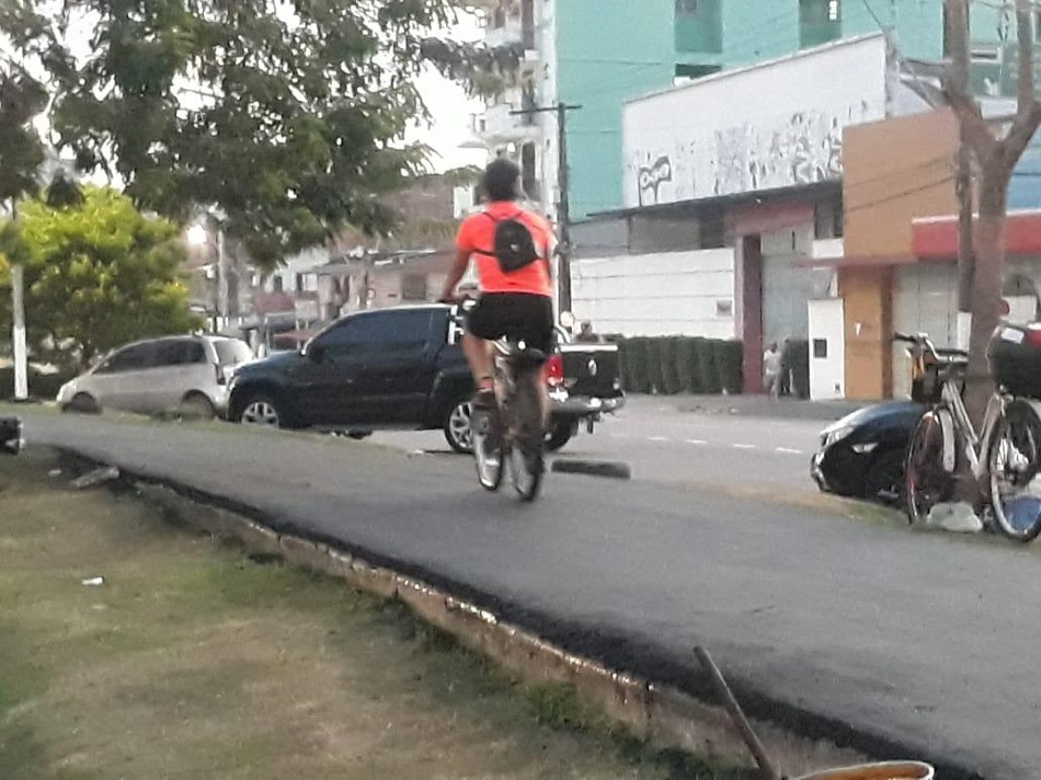 Ciclovia asfaltada – Outra denúncia do ArchiUrbe é sobre o asfaltamento da ciclovia da avenida Duque de Caxias, entre os bairros de Fátima e Marco. “Belém sofre com temperaturas altíssimas e certamente ampliar a superfície de asfalto até para as ciclovias não contribui para uma sensação térmica agradável na via, pelo contrário, favorece a formação de ilhas de calor no espaço urbano. O registro é da execução de serviço de asfaltamento da ciclovia da avenida Duque de Caxias”.