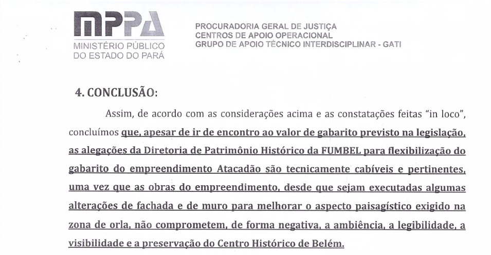 ATACADÃO DA ORLA DO PORTAL DA AMAZÔNIA – O Ministério Público do Pará (MPPA) indicou parecer favorável ao Atacadão da Rede Carrefour mesmo dando algumas ressalvas e adaptações ao empreendimento para que a obra seja concluída.