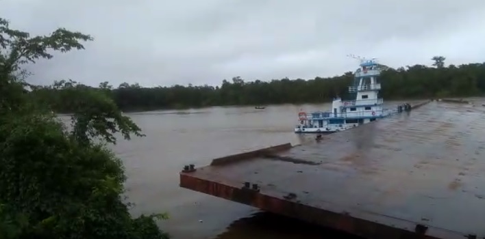 Uma balsa que transportava madeira atingiu um dos pilares da ponte do distrito de Outeiro, por volta das 6h30 desta segunda-feira, 17.