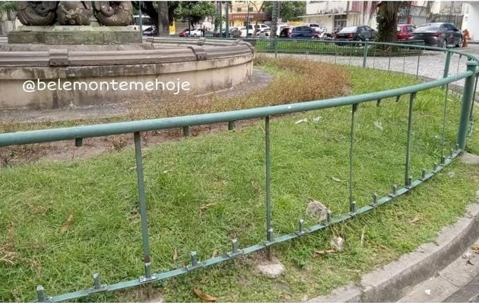 A praça da Sereia, localizada na avenida Presidente Vargas, no bairro da Campina, teve o gradil do chafariz roubado. A denúncia foi feita pela página no Instagram “Belémontemhoje”.