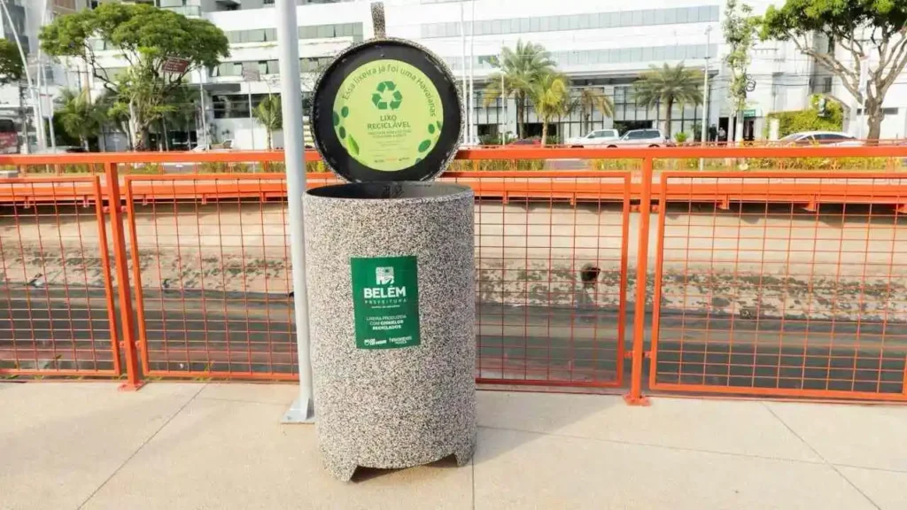 Belém instala lixeiras feitas de chinelos reciclados no Parque da Doca