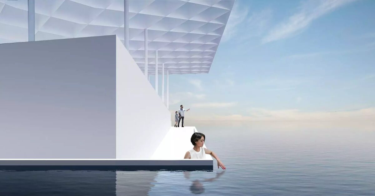 A praça flutuante foi inspirada no funcionamento de submarinos e no princípio de Arquimedes. O sistema permitirá que a plataforma se ajuste ao nível da água, simulando os efeitos da elevação do mar e possibilitando que visitantes percebam fisicamente essas variações.