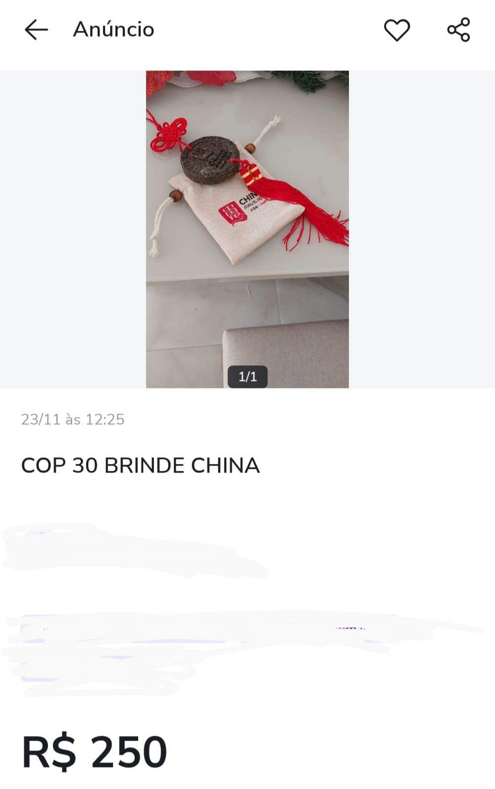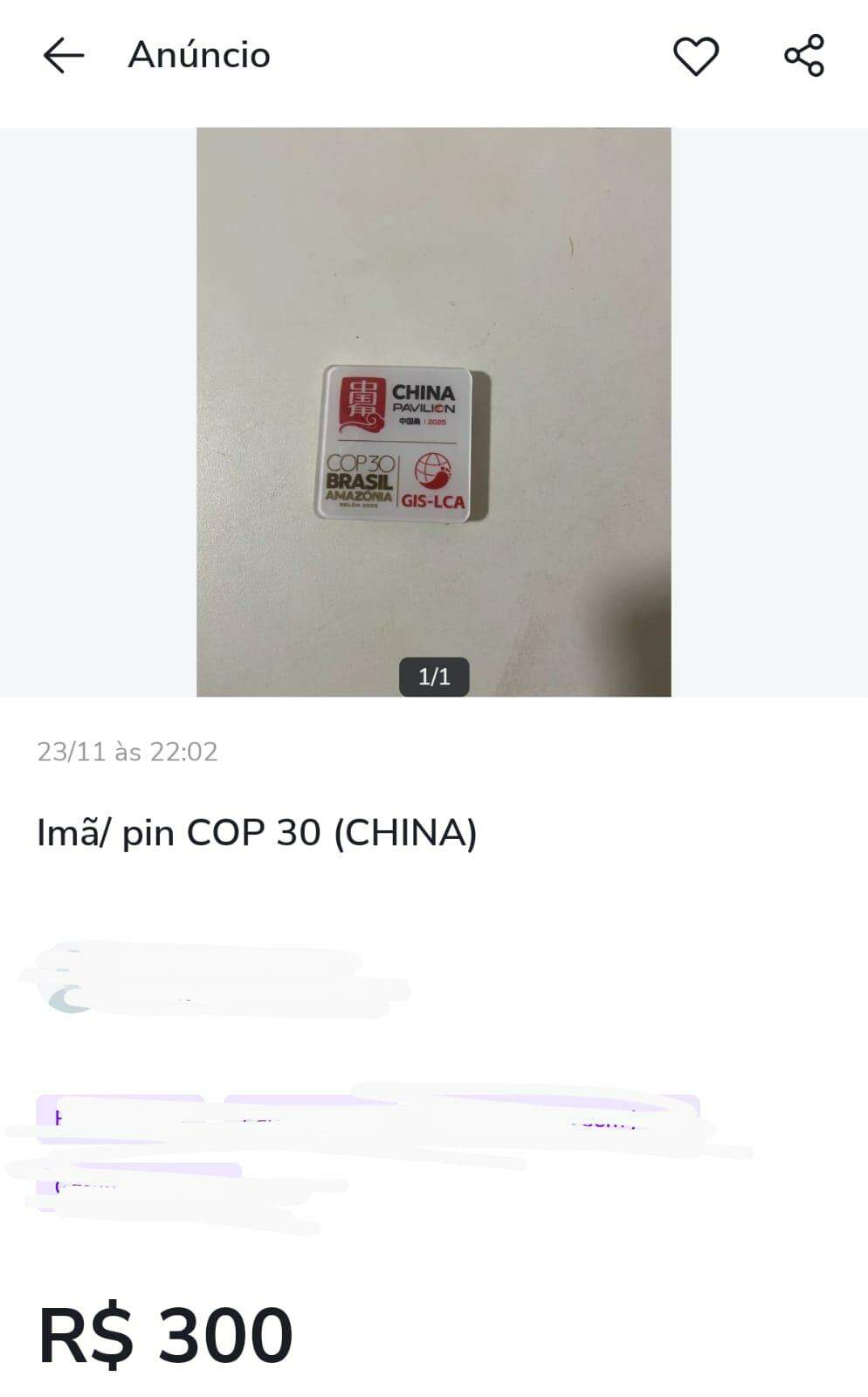 Poucos dias após o encerramento da COP 30, em Belém, os brindes distribuídos durante a conferência já se transformaram em um negócio lucrativo na internet. Lembranças que geraram filas durante o evento agora aparecem anunciadas em sites como a OLX, com valores que chegam a R$ 500.