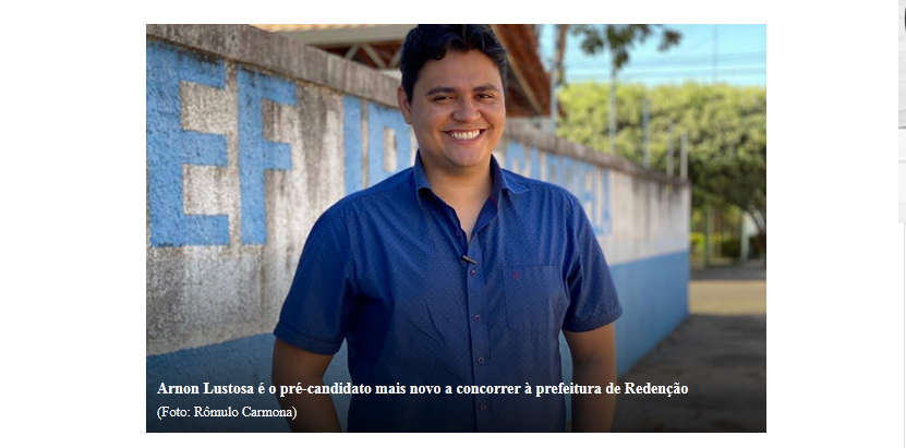 Já em Redenção, Arnon Lustosa (PP) é o pré-candidato mais novo a concorrer à prefeitura do município. Advogado e empresário do ramo imobiliário, Arnon afirma que a cidade precisa de mais jovens engajados na política. Aos 20 anos, foi candidato a vereador e, hoje, almeja o cargo de prefeito de Redenção. Com a promessa de ser o nome da nova política, o pré-candidato traz consigo ideias inovadoras para melhorar a qualidade de vida e o desenvolvimento da região.