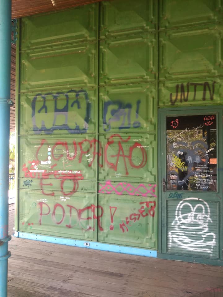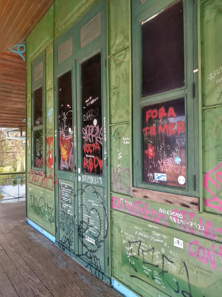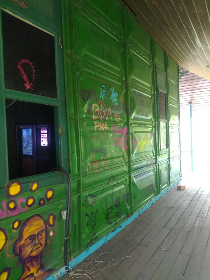 A denúncia foi feita pela página Movimento Liberal Paraense. As fotos são impactantes e mostram as paredes do chalé completamente pichadas.
