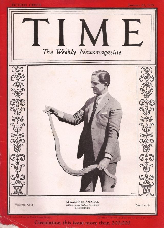 Há 94 anos, em 28 de janeiro de 1929, o cientista paraense Afrânio do Amaral, então diretor do Instituto Butantan, tornava-se o primeiro brasileiro a ilustrar a capa da revista Time.