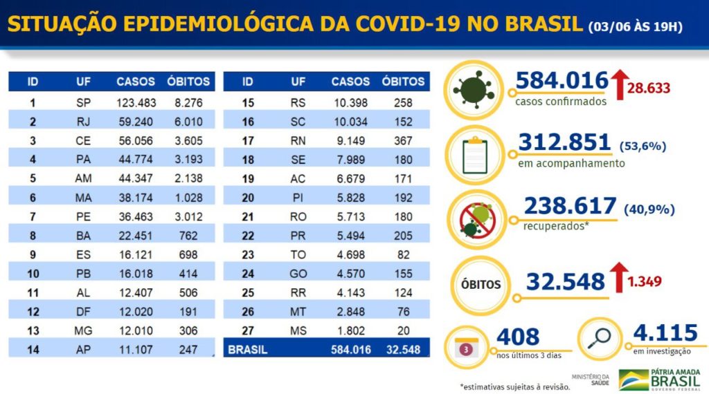 O Pará já havia ultrapassado o estado vizinho em números de óbitos, no entanto, o Amazonas ainda “liderava” em número de casos positivos. Com isso, o estado paraense é o quarto estado brasileiro mais atingido pela doença, atrás apenas de São Paulo, Rio de Janeiro e Ceará.
