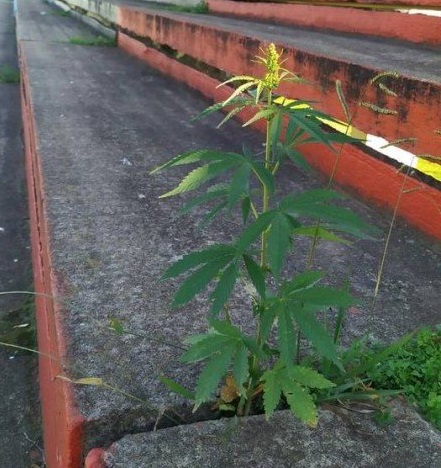 Com jogos parados, pé de maconha nasce em cimento de arquibancada na Argentina