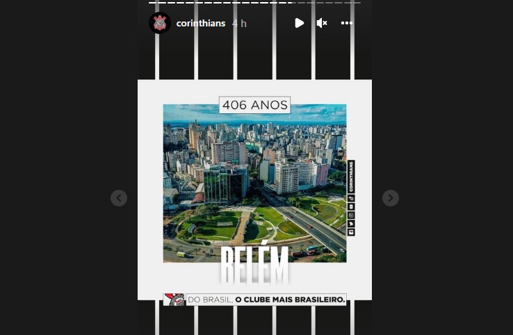 Pela rede social do Instagram, o clube do Corinthians quis homenagear a capital paraense com uma foto da cidade, mas errou a imagem.