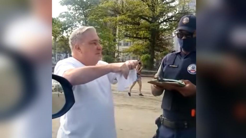 “Você quer que eu jogue na sua cara? Faz aí, que eu amasso e jogo na sua cara”, diz o desembargador ao ser abordado sem máscara, se referindo à multa por não usar o acessório.