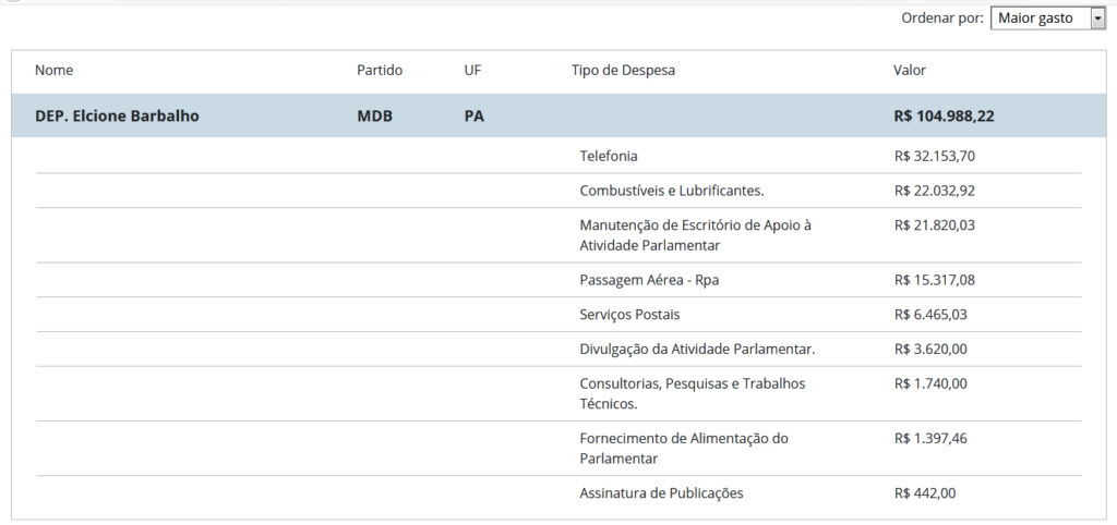 Quem consegue gastar R$ 32 mil só com telefone? De acordo com o portal da transparência da Câmara dos Deputados, a deputada federal Elcione Barbalho conseguiu essa proeza.