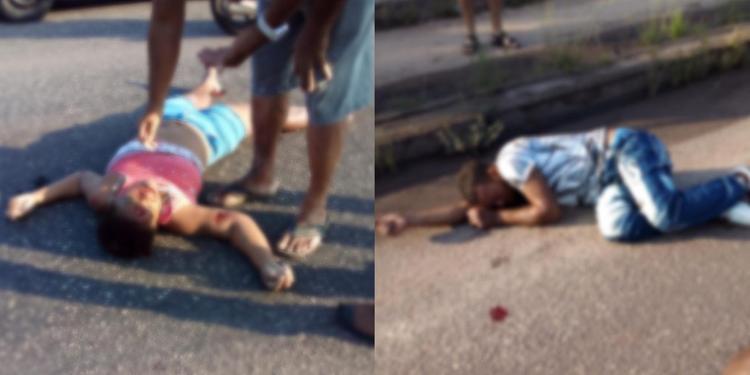 Imagens que circulam nas redes sociais mostram as duas vítimas no chão enquanto aguardam o socorro. A mulher aparentava estar bastante machucada na região da cabeça, com um corte na testa, nos braços e nos pés.
