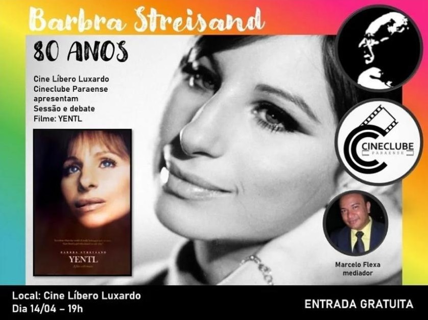A atriz, diretora, roteirista, produtora, cantora e compositora Barbra Streisand celebra 80 anos de idade no próximo dia 24 de abril. E para comemorar a data, o Cineclube Paraense, em parceria com o Cine Líbero Luxardo, exibe naquela sala o filme “Yentl”, dirigido por Streisand, na quinta-feira, dia 14, às 19h, com entrada franca.