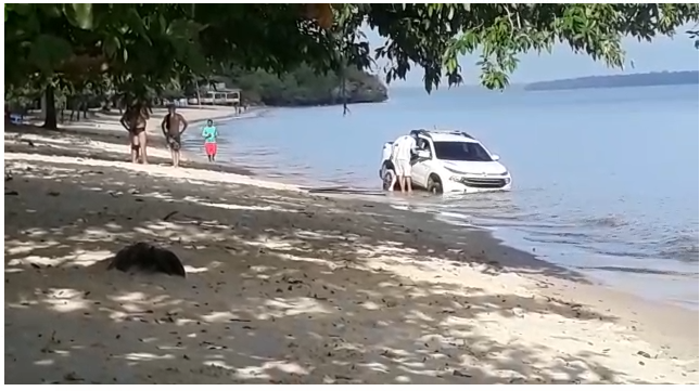Uma cena inusitada no início desta manhã de quinta-feira, 18, chamou atenção dos moradores do distrito de Outeiro, em Belém. Um carro modelo Fiat Toro estava sendo engolido pela maré na praia Grande, uma das mais frequentadas do distrito.