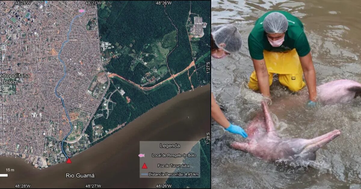 Moradores acionaram equipes de resgate, que retiraram o animal do local. O caso levantou questionamentos sobre como o boto chegou a uma área urbana.