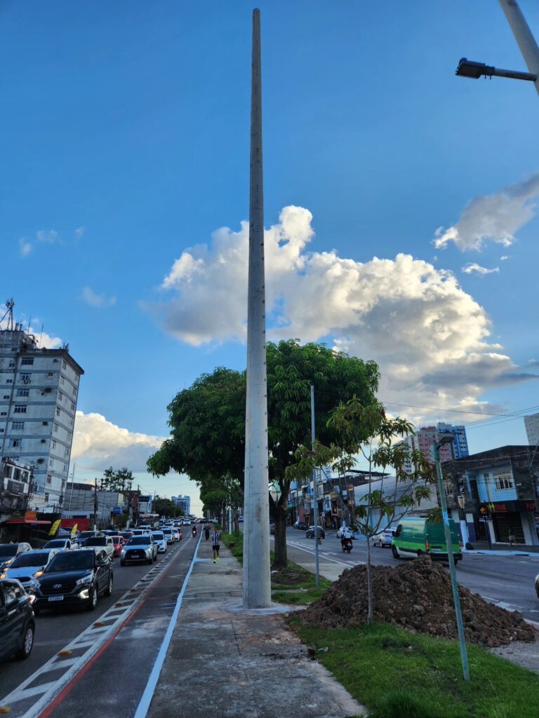 Moradores dos bairros Marco e Curió-Utinga, em Belém, denunciaram a instalação de postes de grande porte no canteiro central da avenida João Paulo II. As estruturas, que seriam destinadas à rede de alta tensão em área urbana, foram posicionadas no meio da faixa utilizada diariamente por pedestres, corredores e ciclistas.