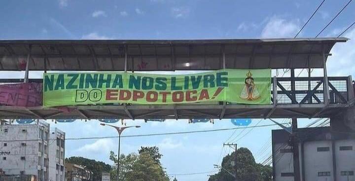 Uma faixa colocada estrategicamente em uma passarela na Almirante Barroso tem chamado a atenção dos transeuntes. O pedido contido na faixa, direcionado à Nossa Senhora de Nazaré, solicita a intervenção divina contra “ED Potoca”, apelido atribuído ao prefeito de Belém, Edmilson Rodrigues (PSOL).