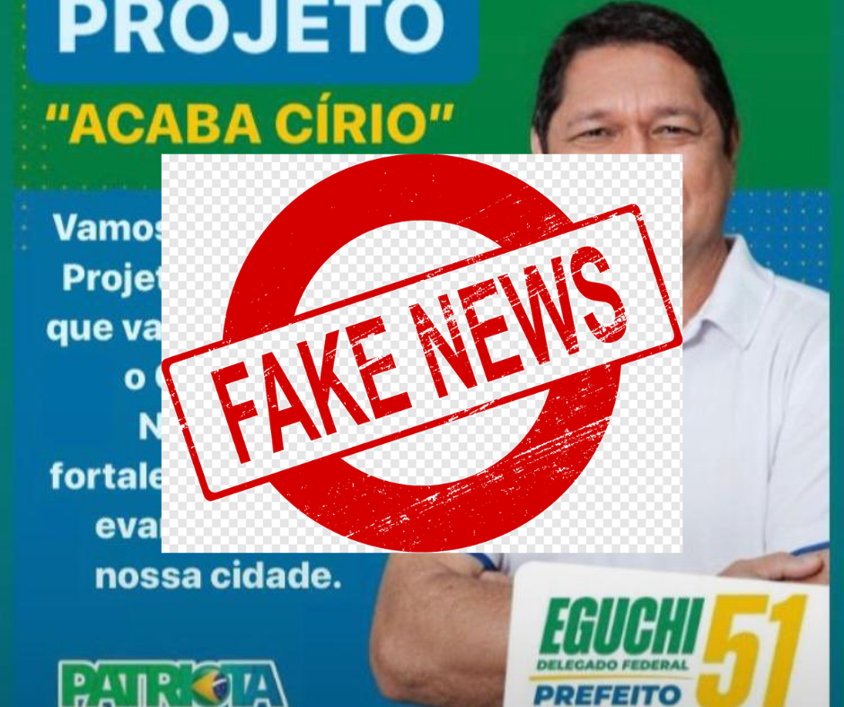 Nem bem o segundo turno começou, as fakes news já estão rolando pelas redes sociais e grupos de troca de mensagens. Uma das fake news que está rolando pelas redes sociais é uma montagem dizendo que o candidato Delegado Federal Eguchi tem um projeto para acabar com o Círio de Nazaré.