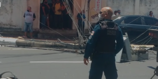 O acidente aconteceu no início da tarde desta quarta-feira, 02, no bairro de São Brás, em Belém. De acordo com testemunhas, uma carreta derrubou um poste de energia elétrica na esquina da avenida Cipriano Santos e Deodoro Mendonça.