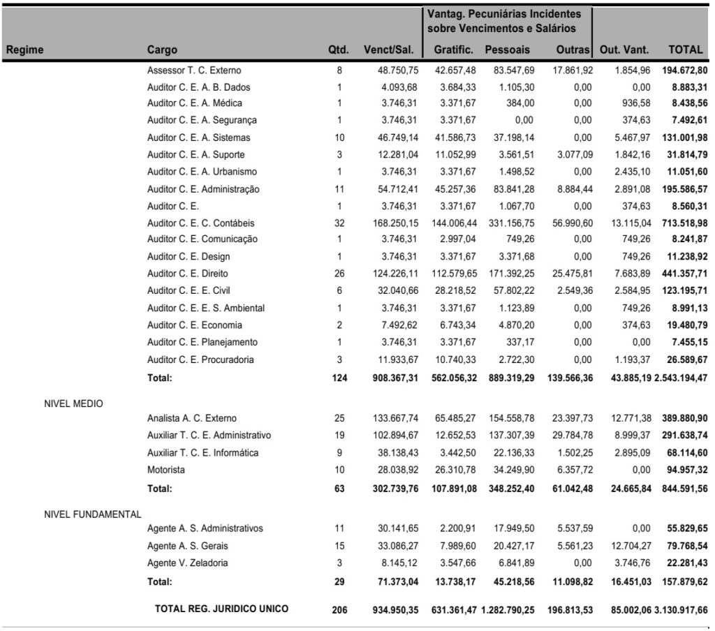 Veja os gastos do TCE do Pará com auditores e comissionados: