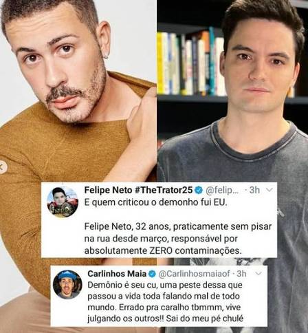 Felipe Neto – Apesar de negar a notícia de que 47 pessoas que trabalharam na celebração estejam com a doença [dois deles teriam ido para a UTI de hospitais em Alagoas], Maia foi duramente criticado por Felipe Neto no Twitter. O youtuber já havia se pronunciado no início da semana sem citar nomes, mas desta vez, foi enfático.