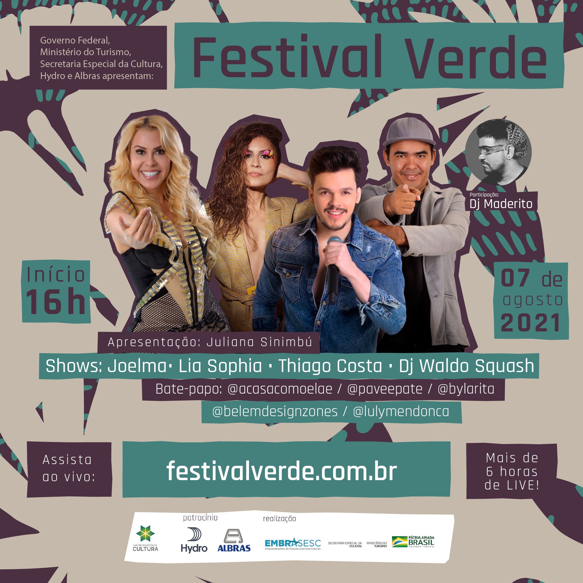 O Festival Verde tem o patrocínio da Hydro e da Albras via Lei de Incentivo à Cultura através do Ministério do Turismo e Secretaria Especial da Cultura.
