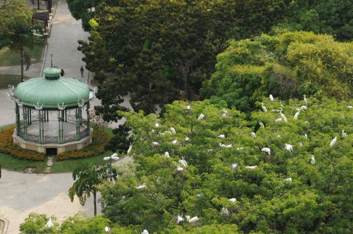 As aves utilizam as árvores da praça como dormitório, o que faz com que grandes quantidades de dejetos se concentrem em áreas de circulação, bancos e calçadas.