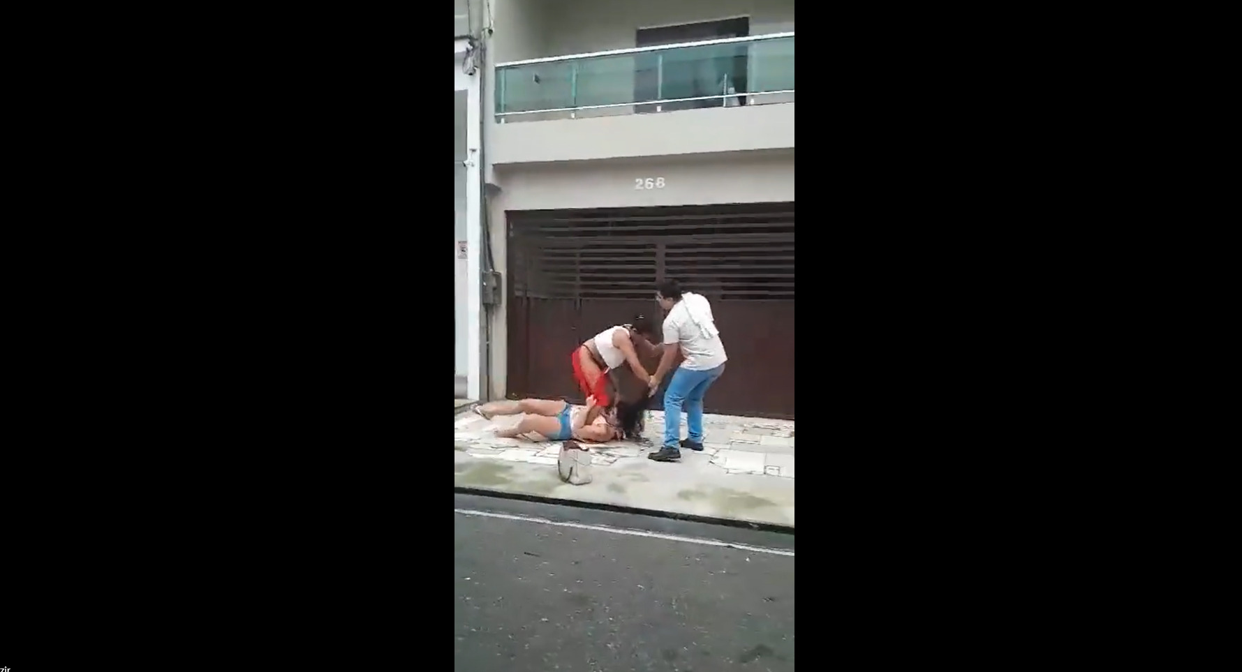 O vídeo do incidente rapidamente se espalhou pelas redes sociais, mostrando a esposa, vestida de vermelho, e a amante envolvidas em uma briga física, com tapas e puxões de cabelo. Enquanto isso, o homem tenta separá-las, sem sucesso, enquanto é flagrado por um espectador dentro de um veículo que passava pela rua.