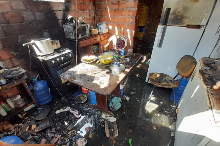 O olhar de tristeza do proprietário da casa, Adison Souza, de 55 anos, entrega a perda da família que vivia no local. Boa parte dos eletrodomésticos da cozinha, alguns comprados até recentemente, foram destruídos pelo fogo. “Tivemos perdas materiais… A geladeira novinha, o fogão elétrico, nosso microondas”, conta o aposentado.