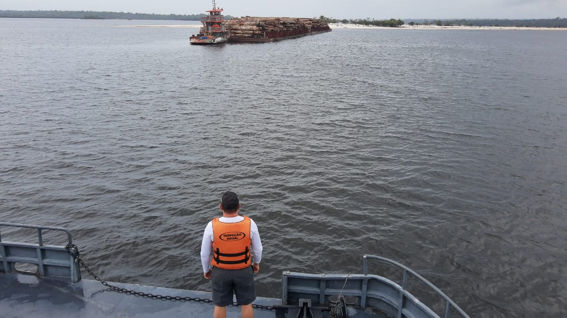 Militares da Capitania Fluvial de Santarém (PA) abordaram outro comboio transportando toras de madeira extraídas da região, no fim da tarde dessa segunda-feira (28).