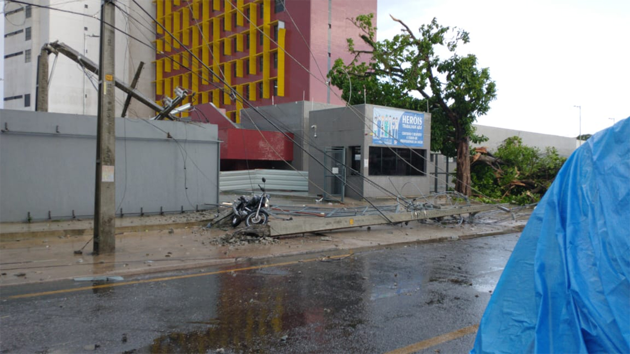 A queda da árvore também derrubou um poste na frente da unidade hospitalar. Informações de parentes de pacientes informam que o hospital está funcionando através dos geradores.