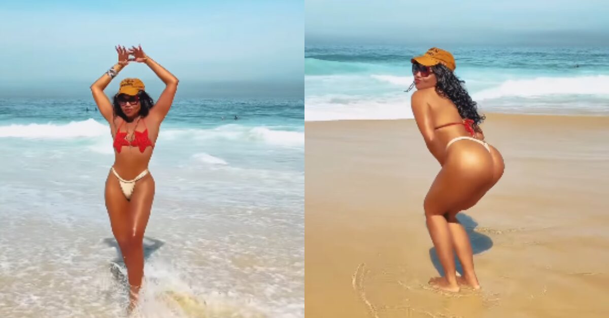Gaby Amarantos comemora perda de peso com dancinha sensual em praia