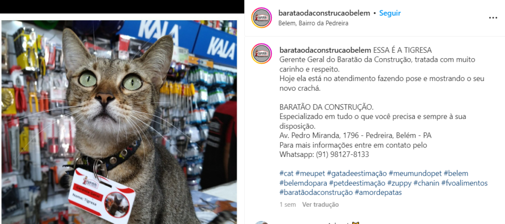 Ela se chama Tigresa e mal chegou numa loja de materiais de construção em Belém,  a Baratão da Construção, e já foi ‘promovida’ a gerente geral. Trata-se de uma gata que foi adotada há 2 anos por funcionários do espaço e que não dorme em serviço. De acordo com o portal G1, a simpática felina tem até crachá e exerce a sua função como ninguém. Tigresa ”fiscaliza’ a loja e ainda recepciona os clientes.