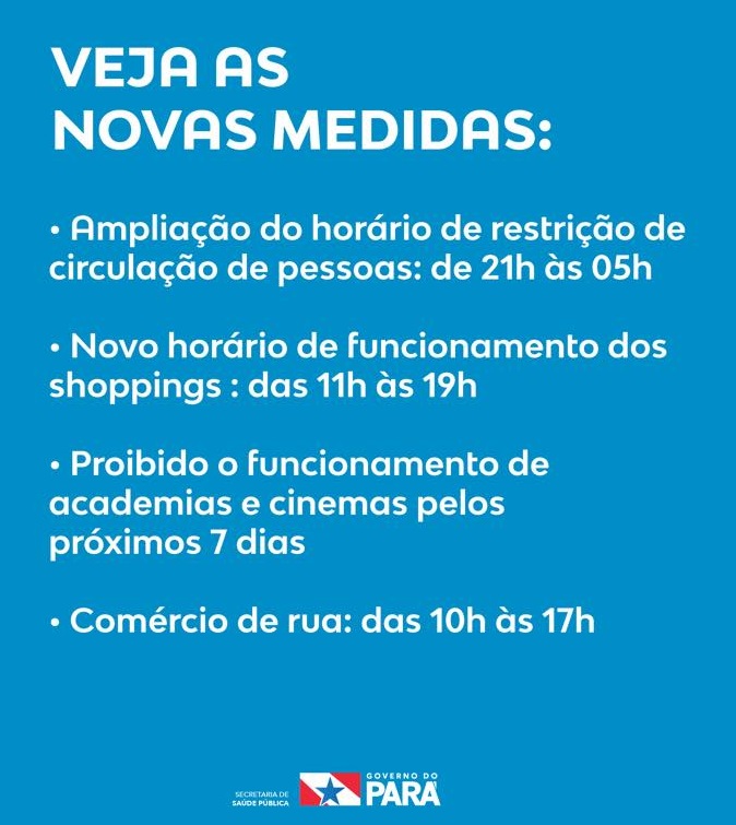 O governador do Pará, Helder Barbalho (MDB), anunciou nesta terça-feira, 9, atualizações sobre as medidas em relação ao avanço da Covid-19 no estado. O decreto estadual foi prorrogado, com ainda mais restrições, e deve valer por mais sete dias, desde a 0h desta quarta-feira, 10.