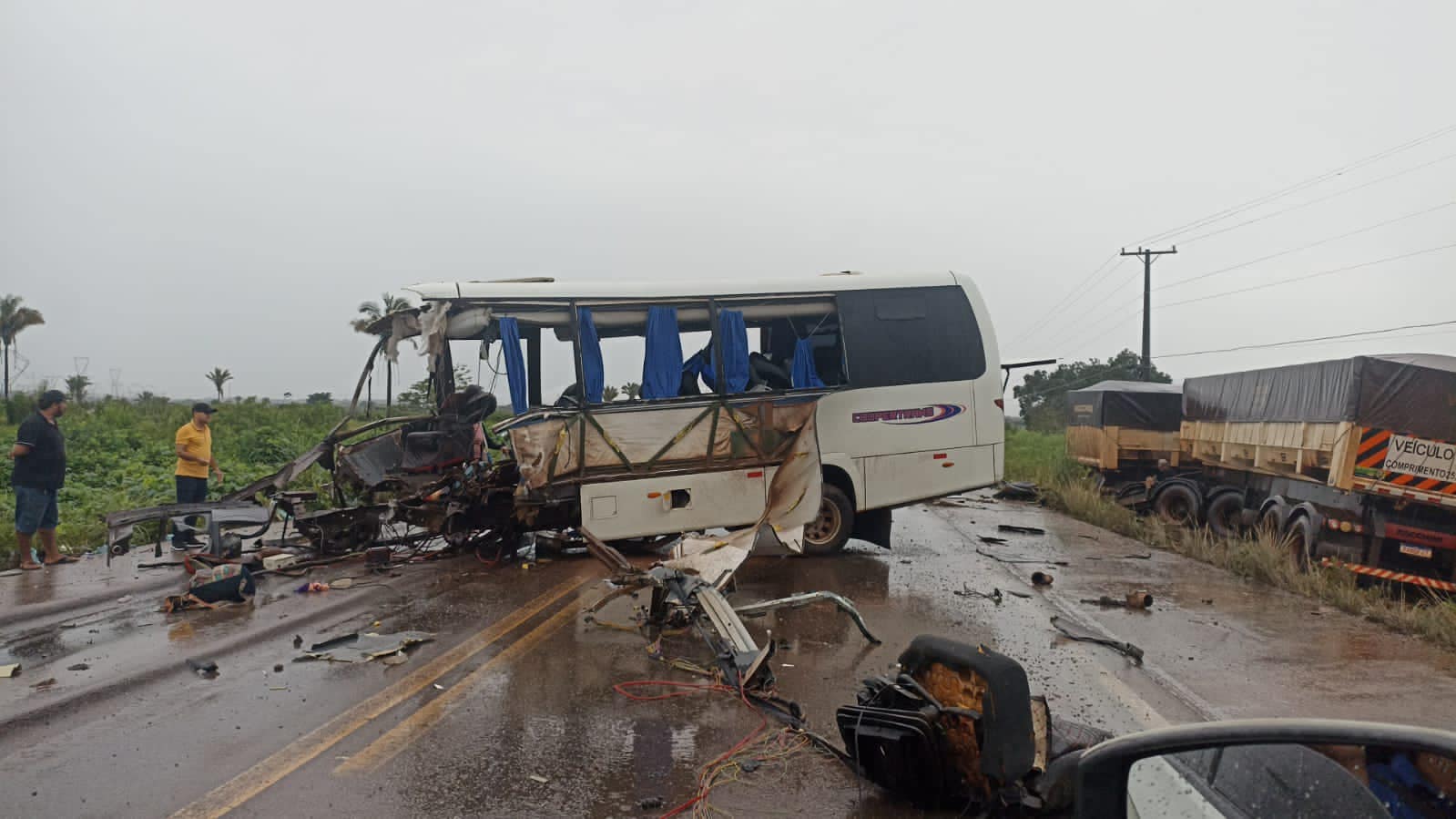 Em imagens divulgadas no WhatsApp, é possível ver o tamanho da destruição causada pela colisão. O micro-ônibus ficou completamente destruído e os destroços ficaram espalhados pela pista. É visível também que a carreta foi parar fora da pista.
