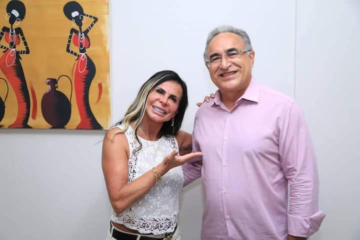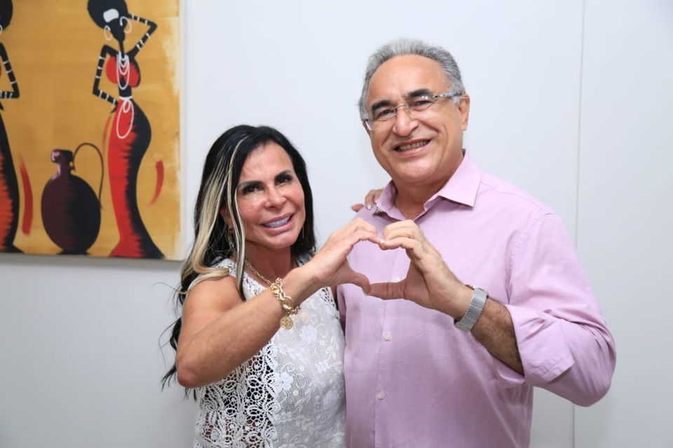 Os dois apareceram juntos na tarde desta sexta-feira, 20, Gretchen faz “coração” com a mão junto com Edmilson e em outra foto aparece abraçada a ele apontado para o candidato como que indicando em quem votar.