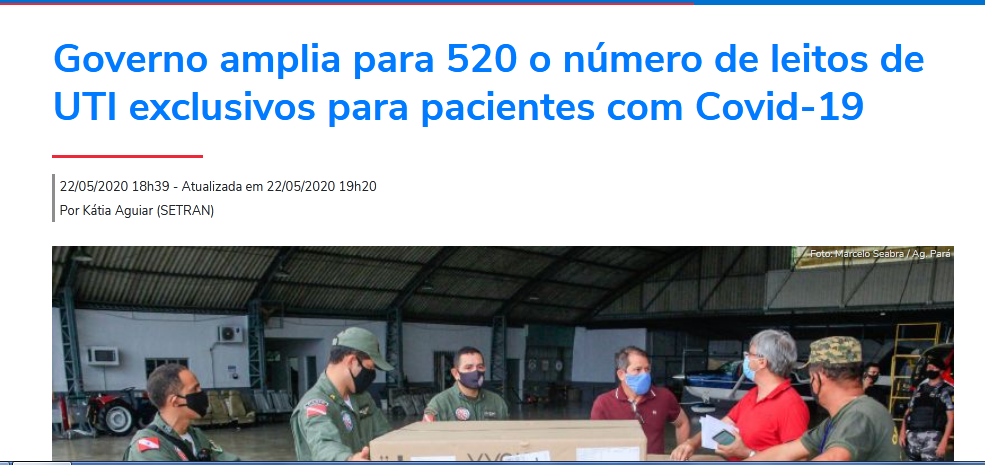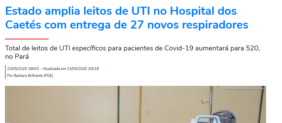 Uma rápida olhada pelas manchetes do site oficial do governo do Pará, a Agência Pará, com relação a esse assunto, o padrão se repete: “Governo do estado amplia leitos de UTI….”.