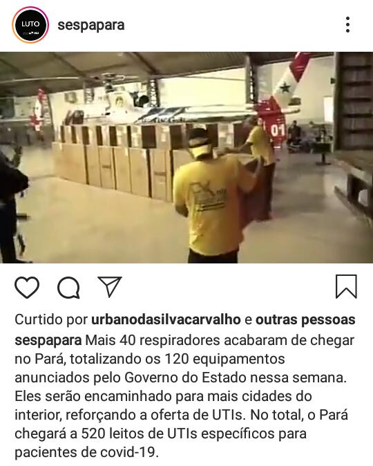 A mesma situação se repete agora com os respiradores enviados ao estado pelo governo federal. Só neste final de semana, foram enviados pelo Ministério da Saúde 120 respiradores distribuídos pelo interior do Pará.