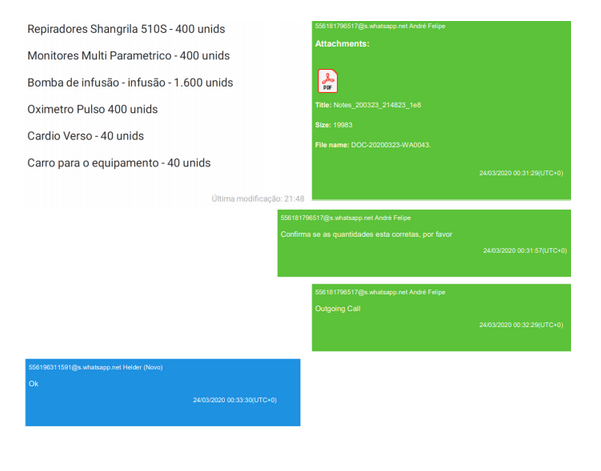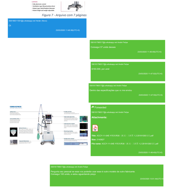 Helder e André começam a trocar mensagens para negociar a compra dos respiradores no dia 20 de março.